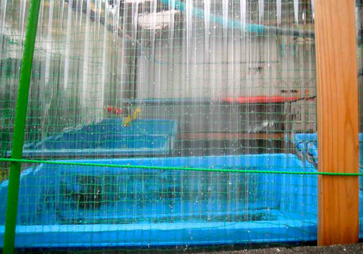 1部の上部や東側から雨が降り込んでいたので雨が降っている中