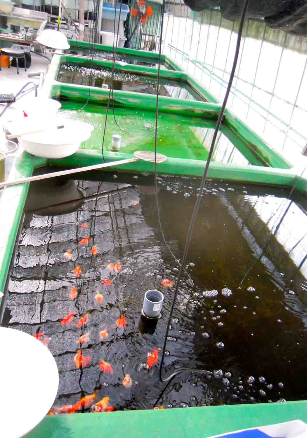 またその飼育場には蘭鋳だけでなくピンポンパールや、