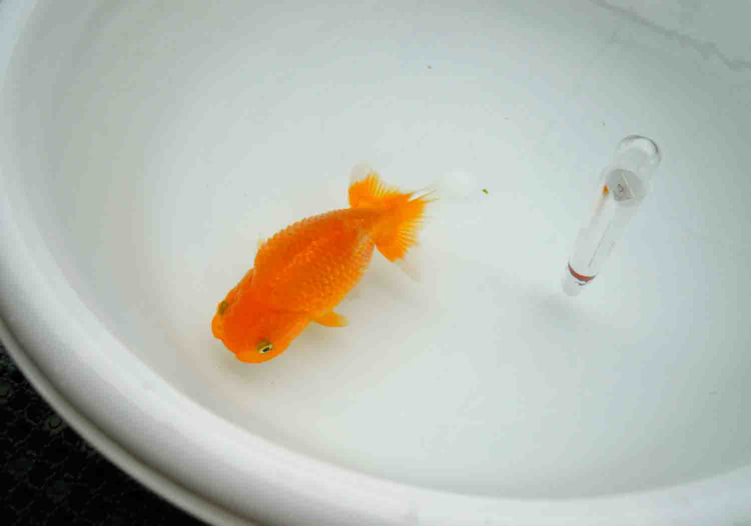 金魚への負担を軽くする為に少し軽めの0.3%の塩浴で、薬を止めたそうです。