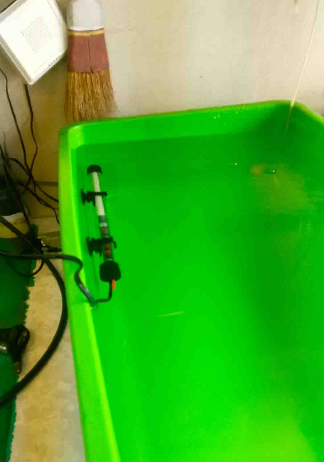 まず水道水を入れてからヒーターの全体を水に沈めて、