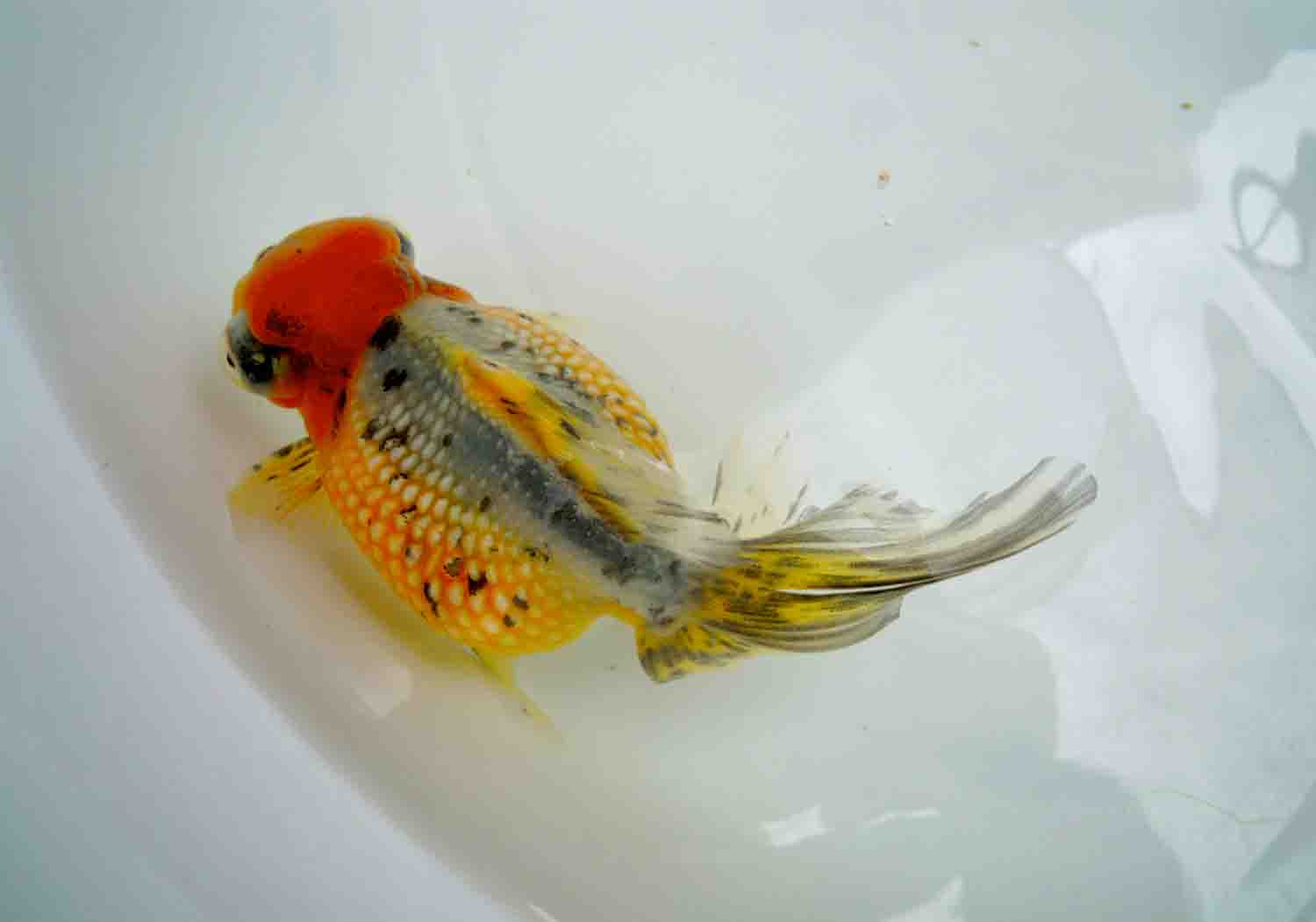 色揚げ効果のある餌の影響で白色が綺麗なところだったのにほのかに、
