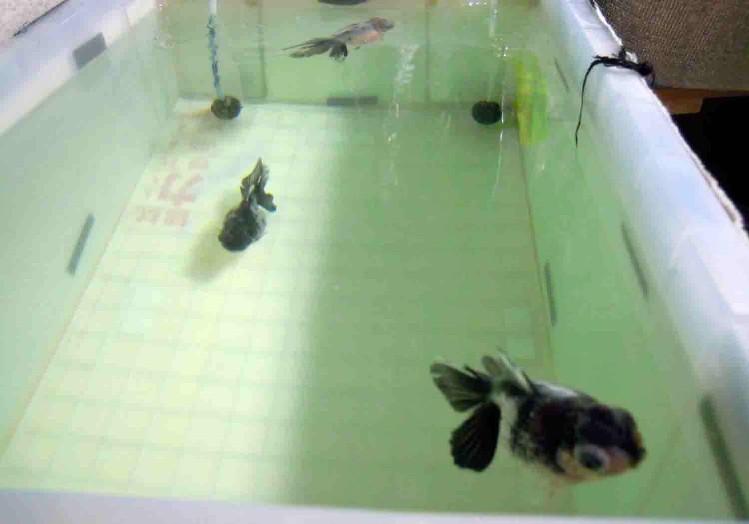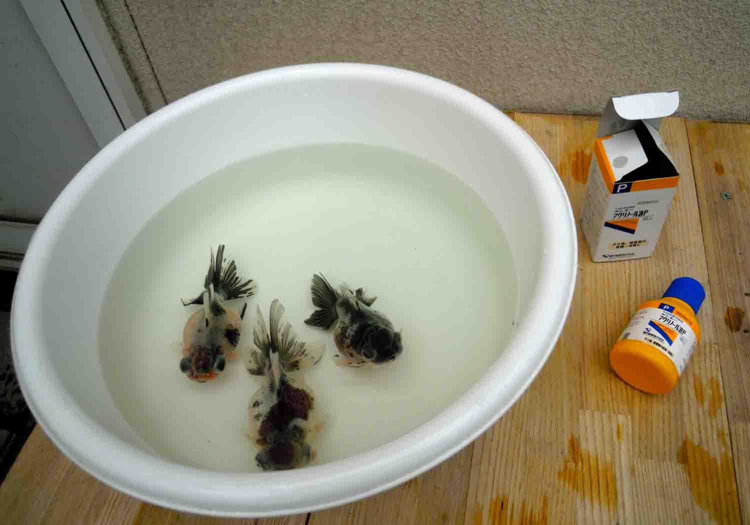 一時は病気になってしまった金魚達は治療で薬浴していた、