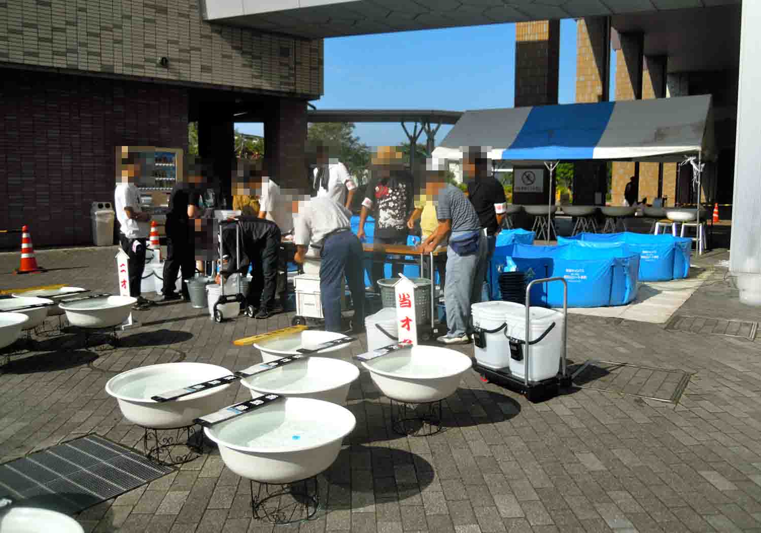 受付が終わると次は連れて来た魚を預けるらしいです。