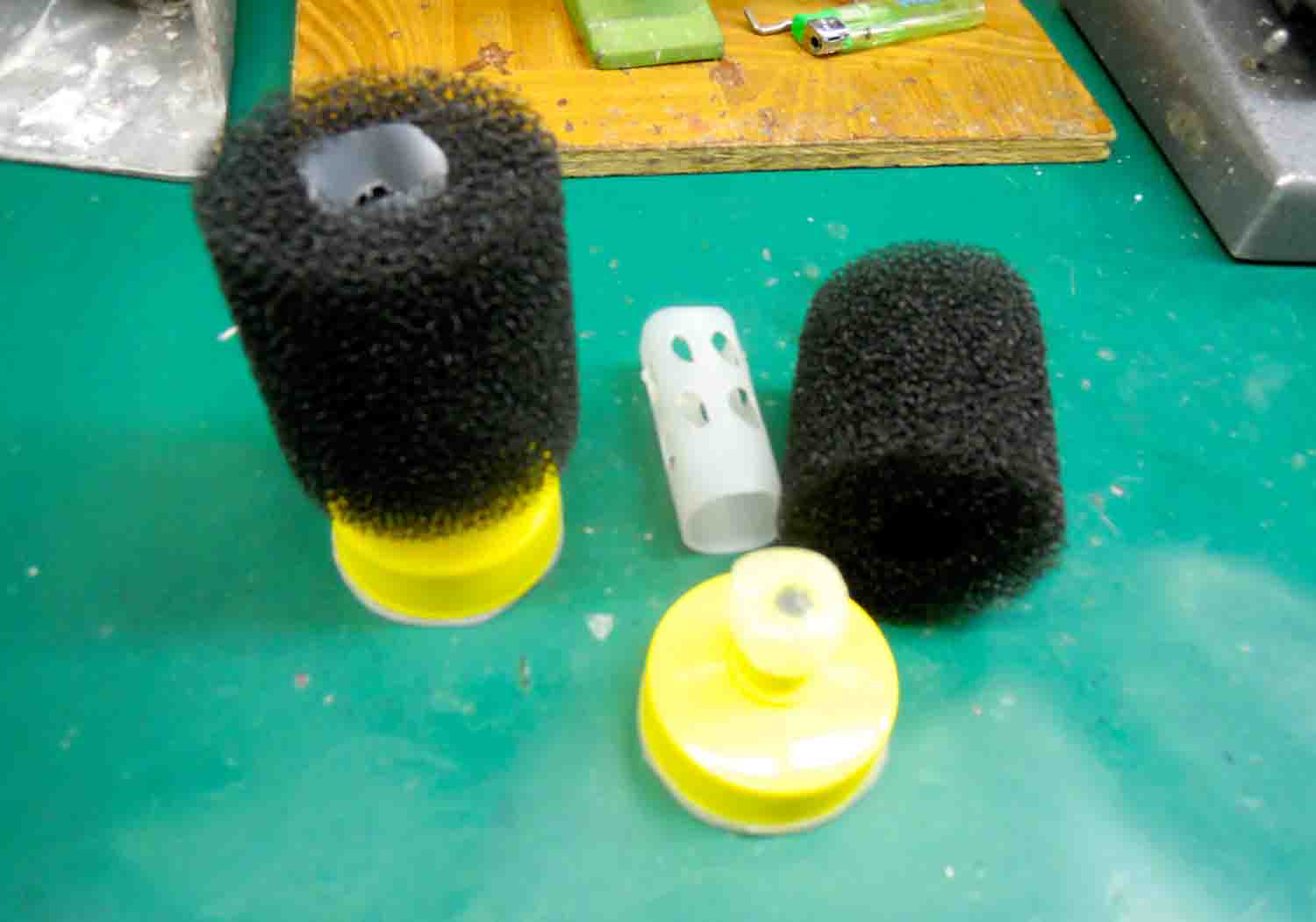 浮き草が入っていた蜂蜜の入れ物はスポンジフィルターを作るのにとても重宝します。