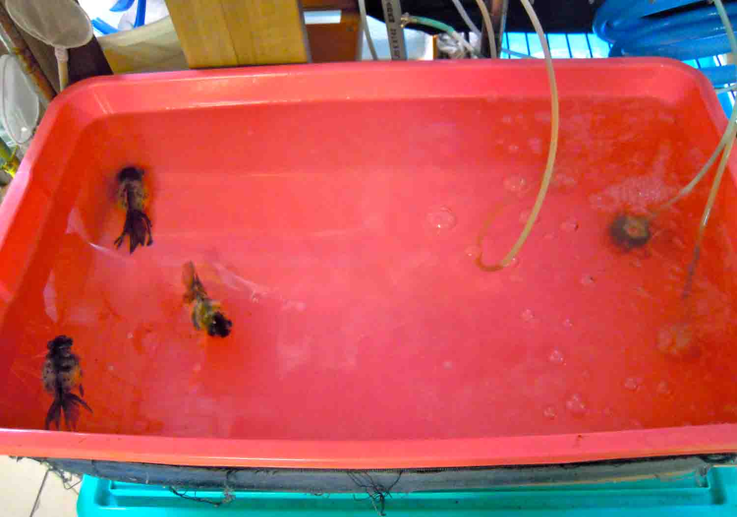 室内は水温が20℃ぐらいで外飼いの時と比べて高いので簡単に考えていたそうです。