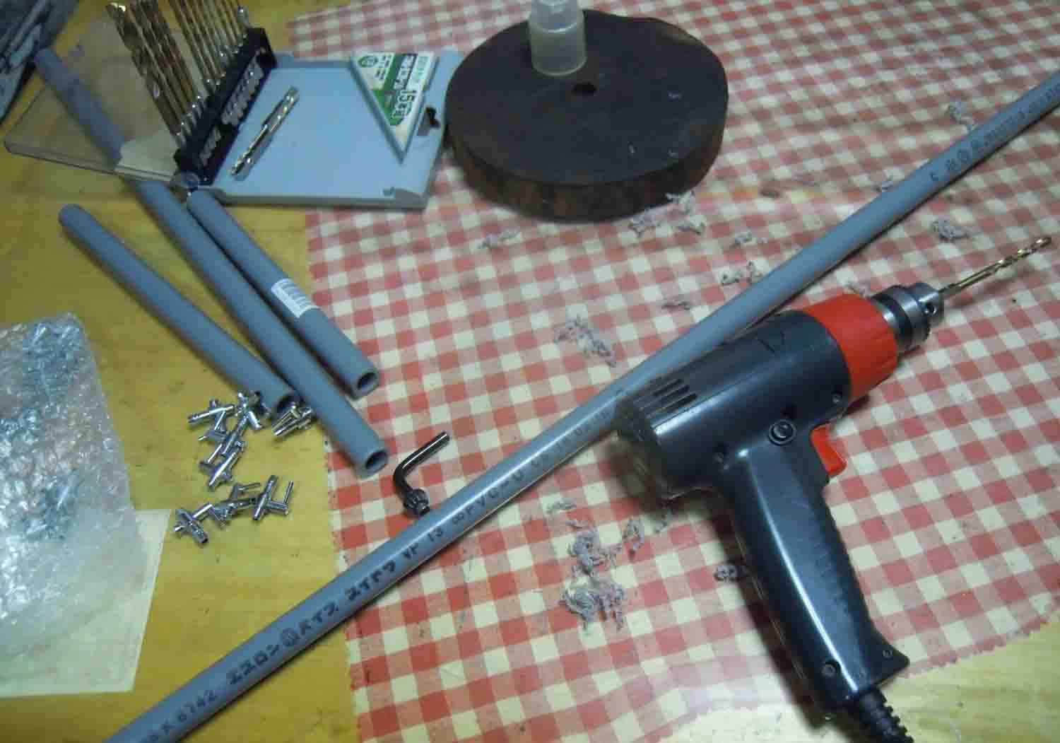 暇を見つけて母は塩ビパイプにエアーコックを付けていました。