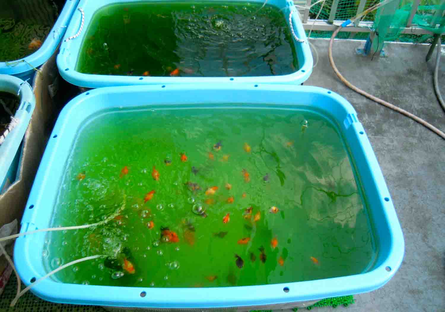 青水が濃くなり過ぎてしまった時は飼育水を1/3ほど水を、