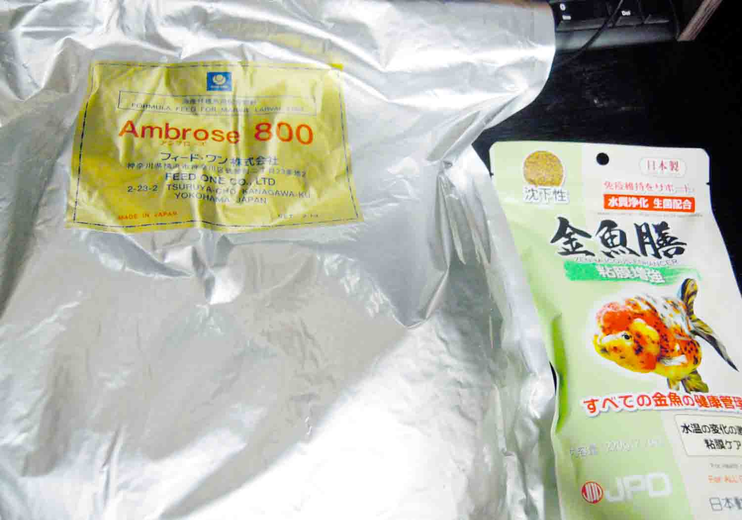 母は稚魚にはまずシュリンプをあげて次にアンブローズ600をあげて、