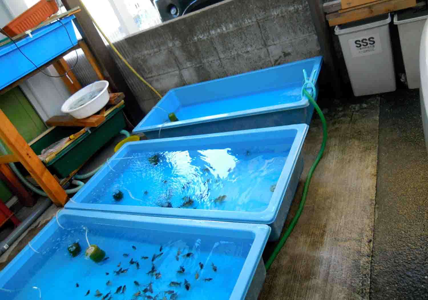 稚魚が順調に大きくなり車庫のトロ舟まで稼働する様になりました。
