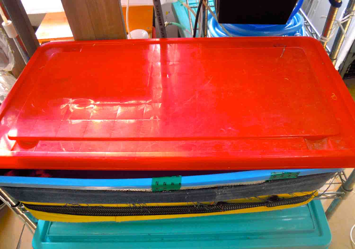 重しを置いて洗面器の時にしていたのと同じ様に暗くしておきます。