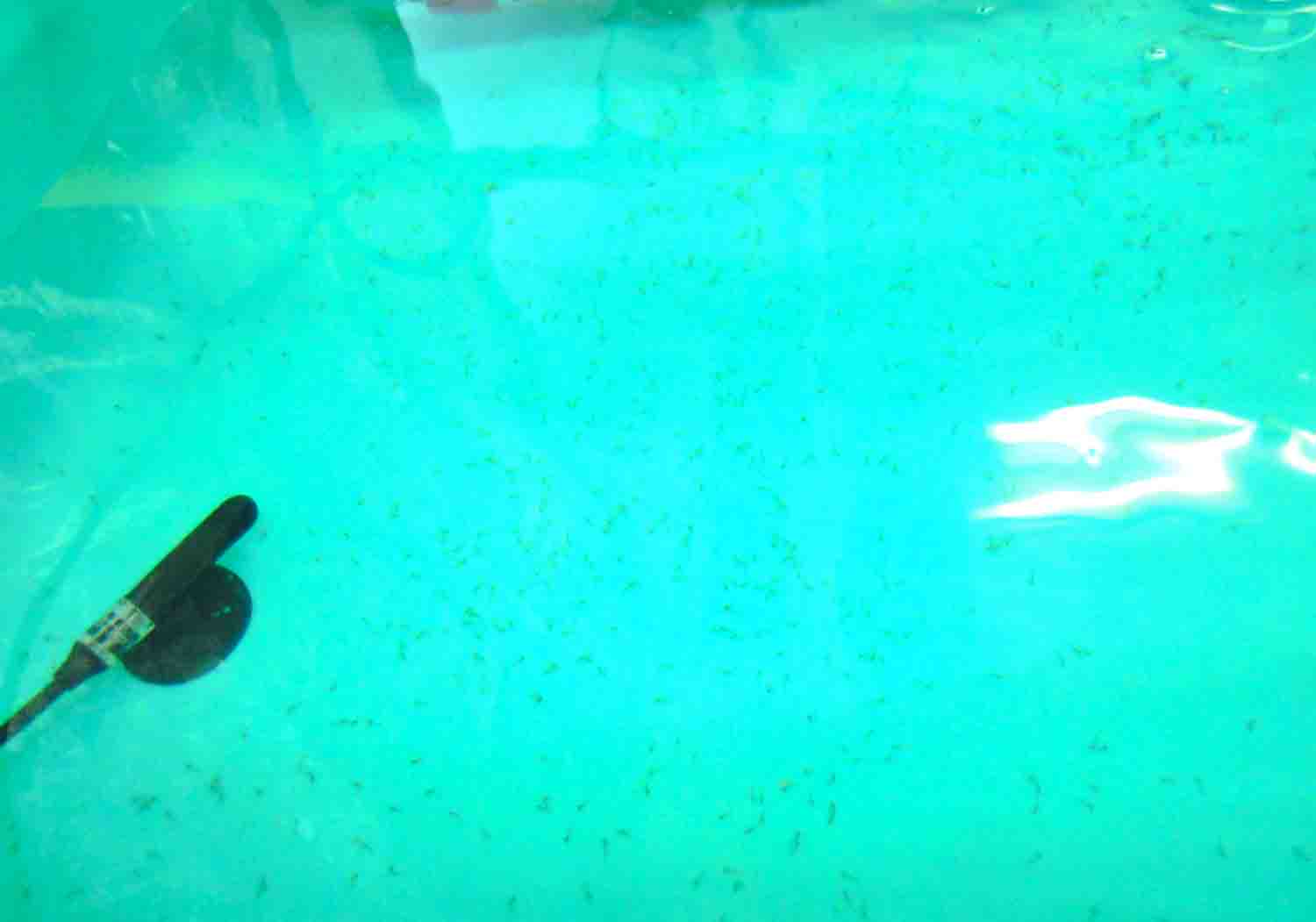 生まれたばかりの稚魚は壁や床に貼り付いてじっとしている事が