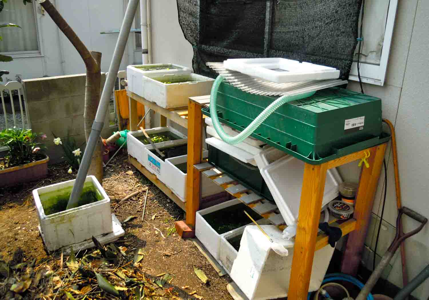 南側の庭に置いてある棚にトロ舟がピッタリなのは良かったのですが、