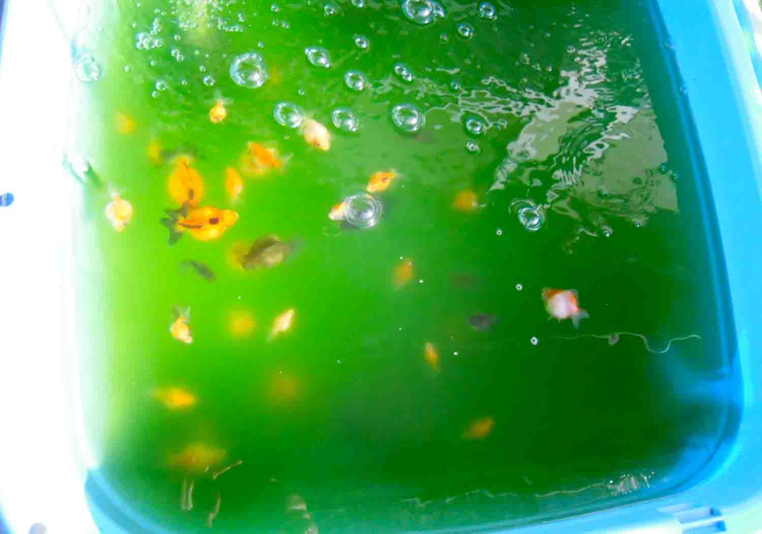 水換えが終わったら種水で除けていた青水ごと魚を戻すみたいです。
