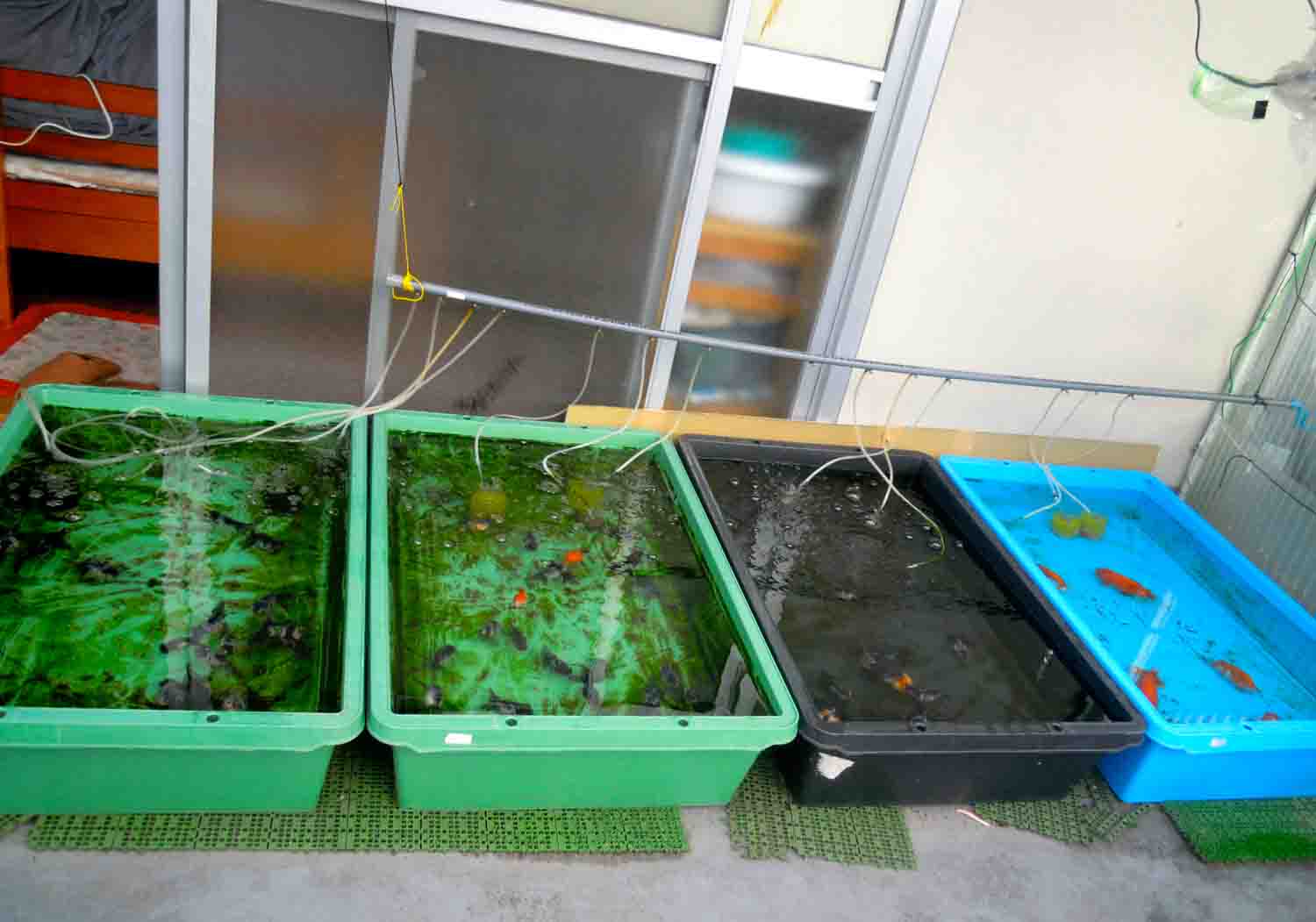 ここには小さい稚魚達が入っているのですが日当りが良く、