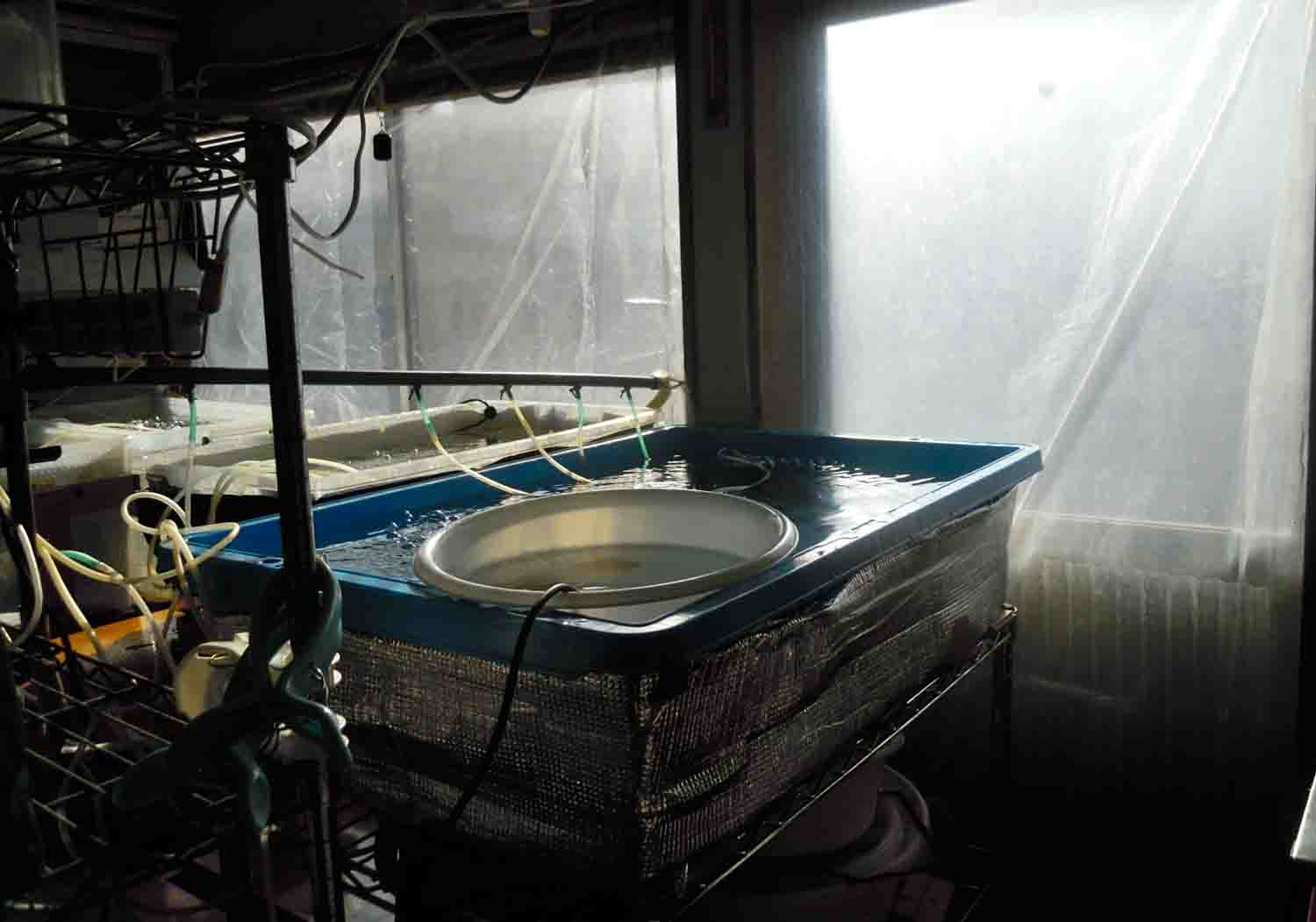 なるべくヒーターを使わなくても水温を保つ事が出来るように保温をして、