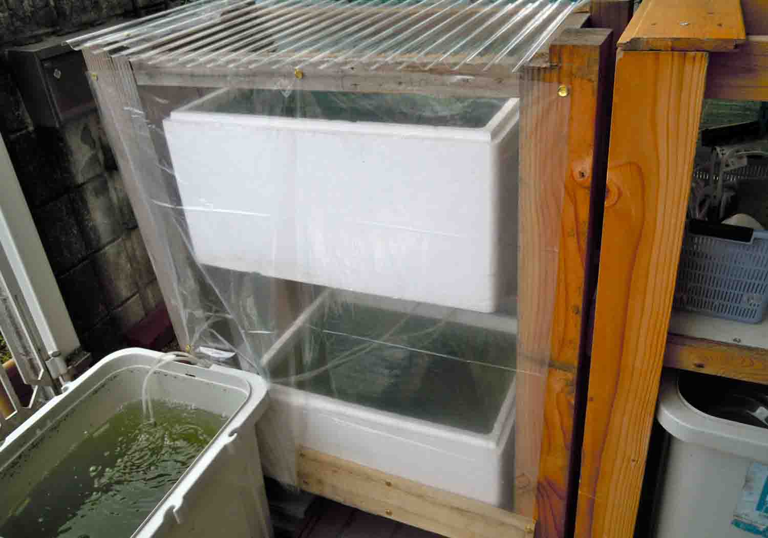 寒さに弱いヒカリメダカの一部を発泡スチロールにも入れているそうです。