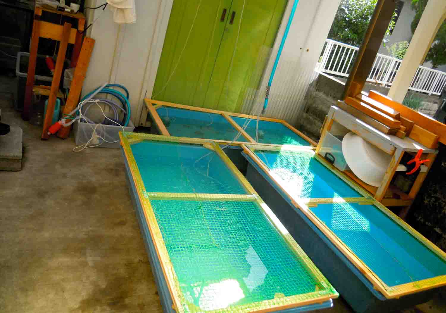 160Lのトロ舟が3つあり品評会用の子達を飼育しています。
