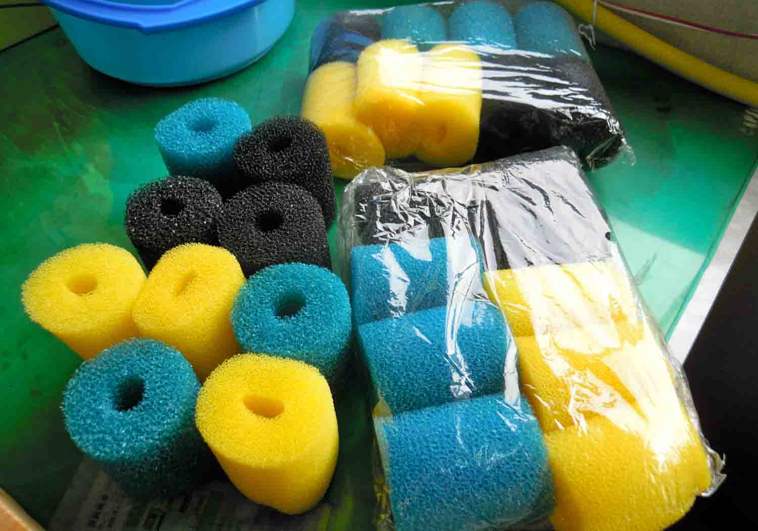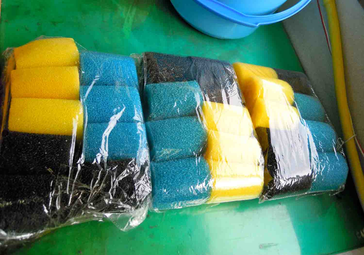 青色と黄色はスポンジの手触りが少し違っていまいたが、