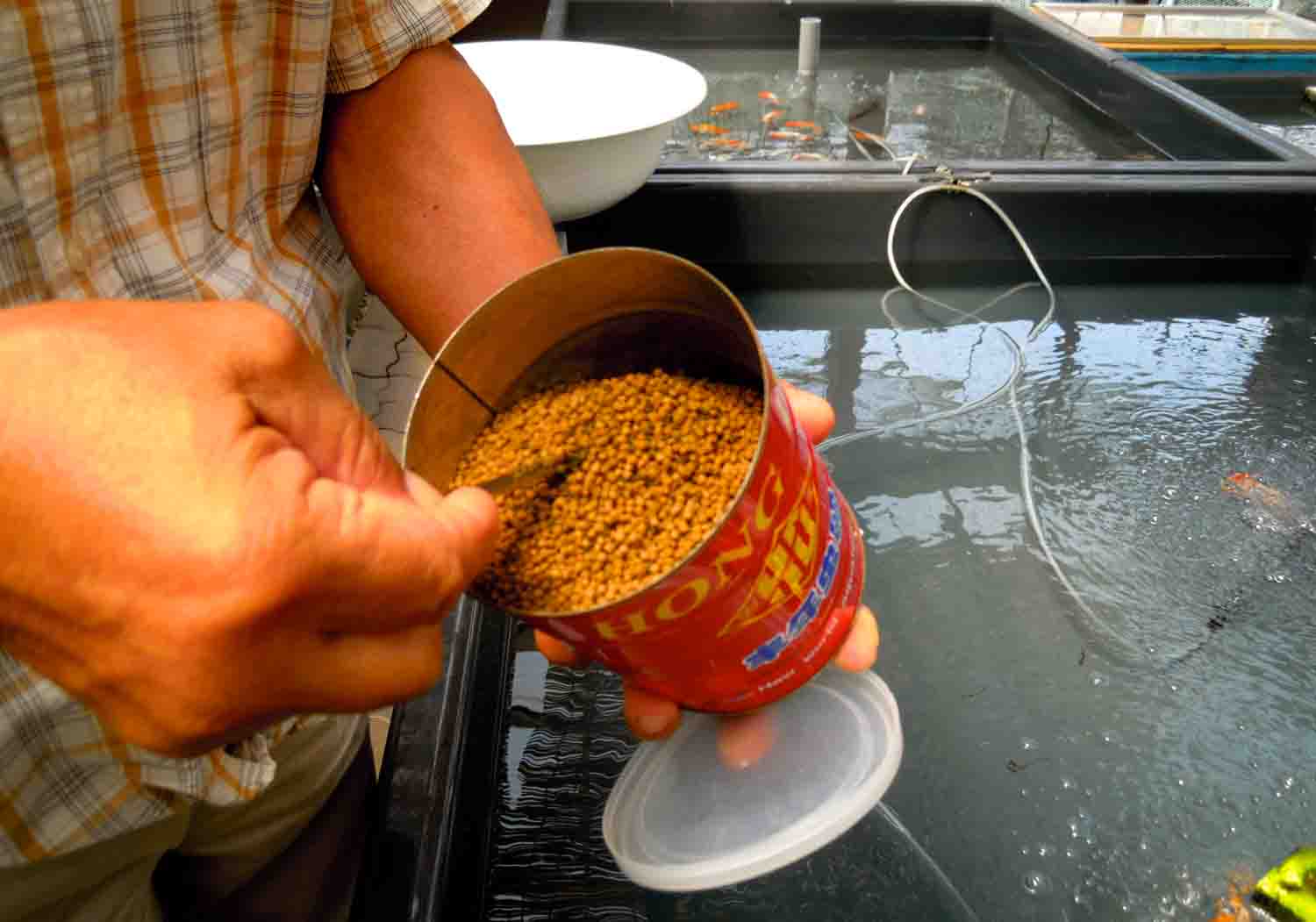 大きなカレースプーンで蘭鋳たちに与えていたらしいです。