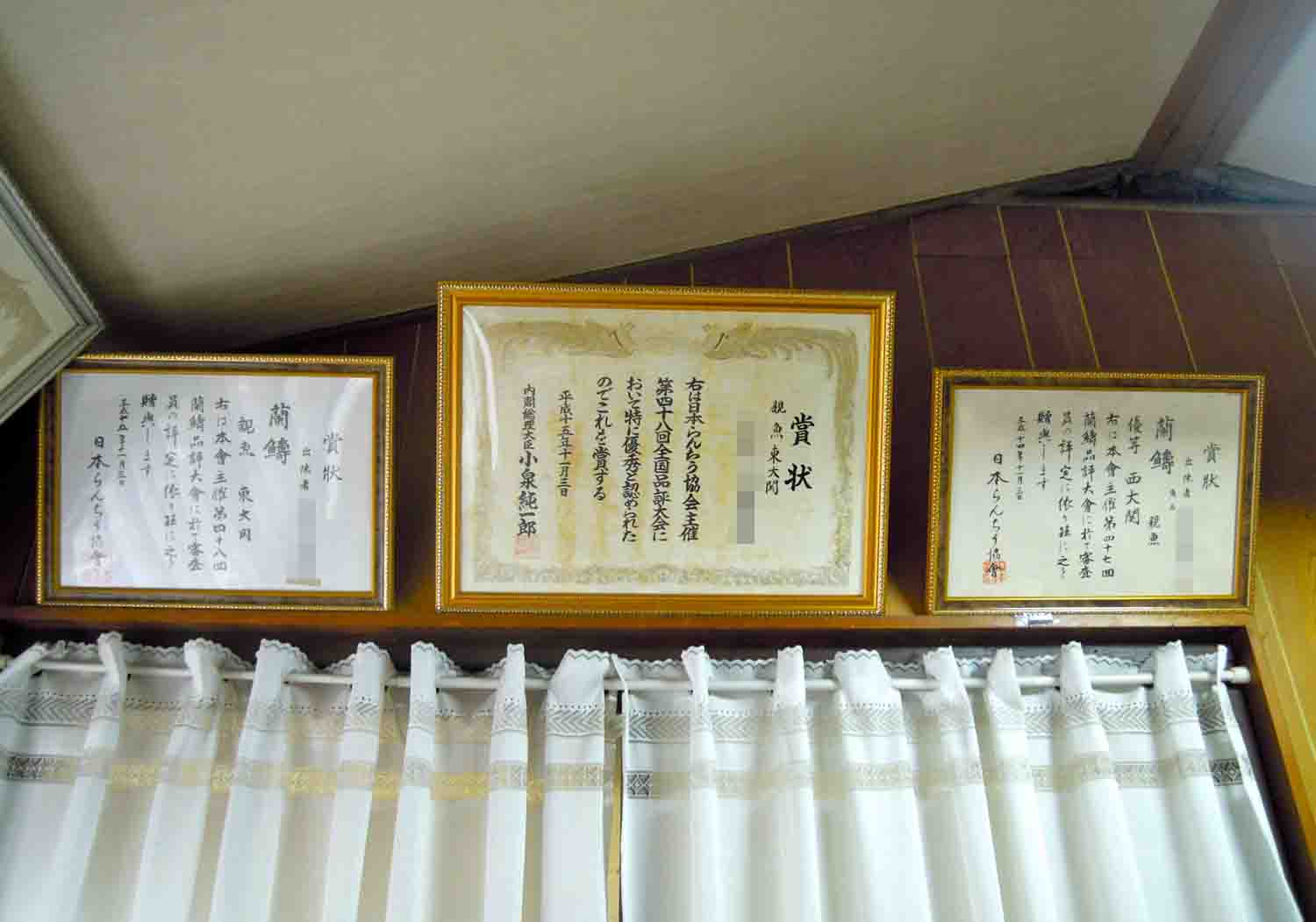 飾ってある賞状の数々の中に一際大きな蘭鋳の写真があったらしいです。