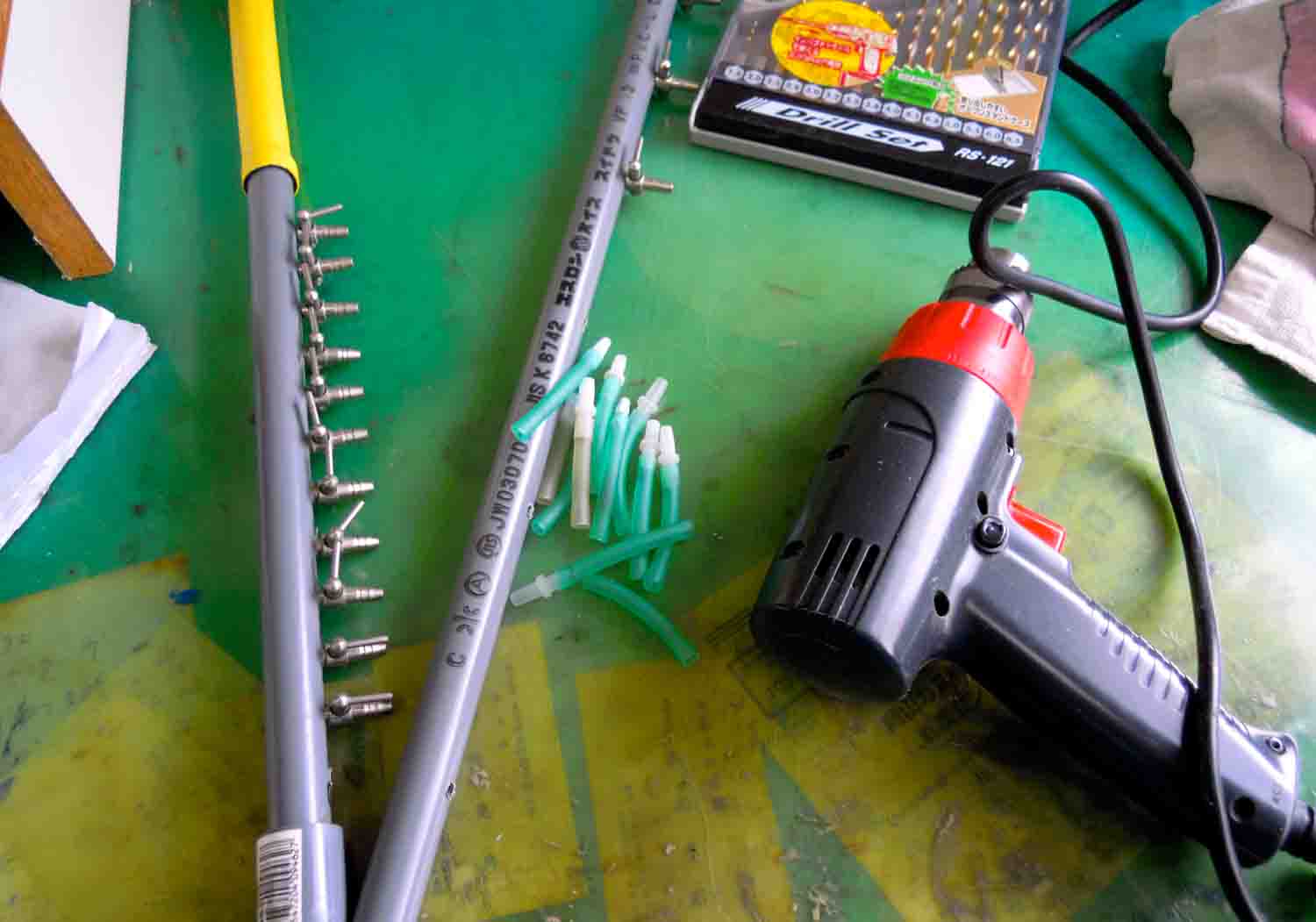 ビニープパイプに穴を開けて使える様にしていました。