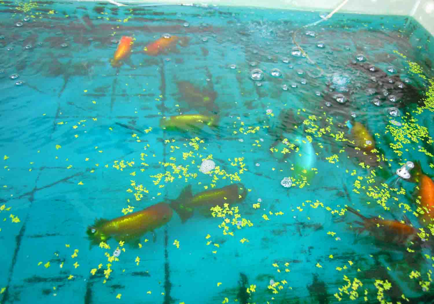とりあえず浮き草を多めにあげて人工エサは少なめにしたそうです。
