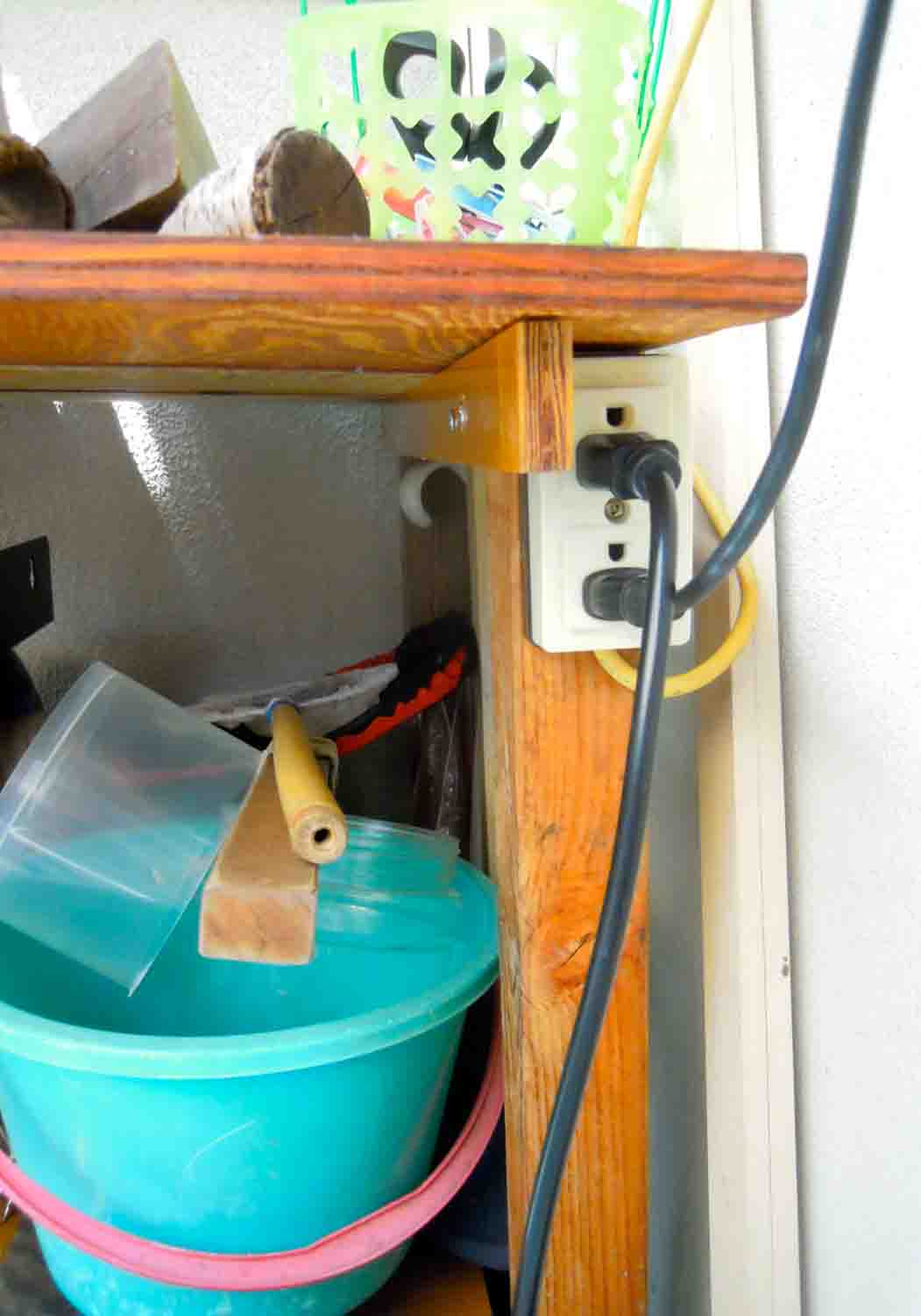 ここならば雨に当たらないし作ったコンセントのコード的にも、