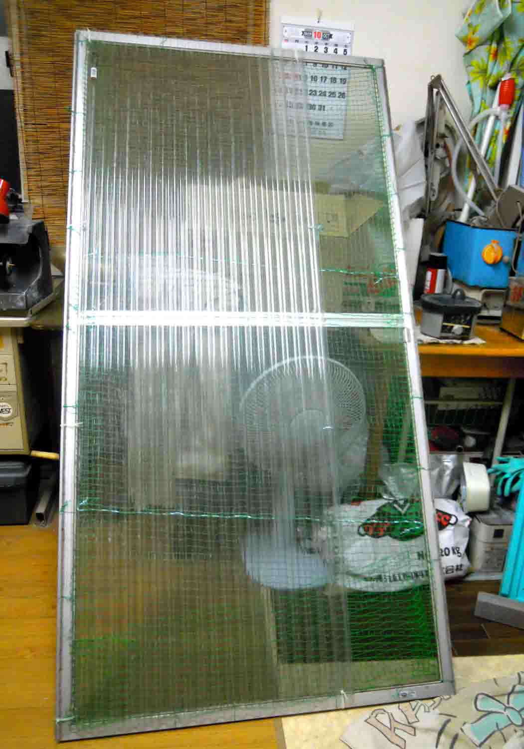 これで飼育場の北側は倉庫と浪板を取り付けた網戸の扉で、