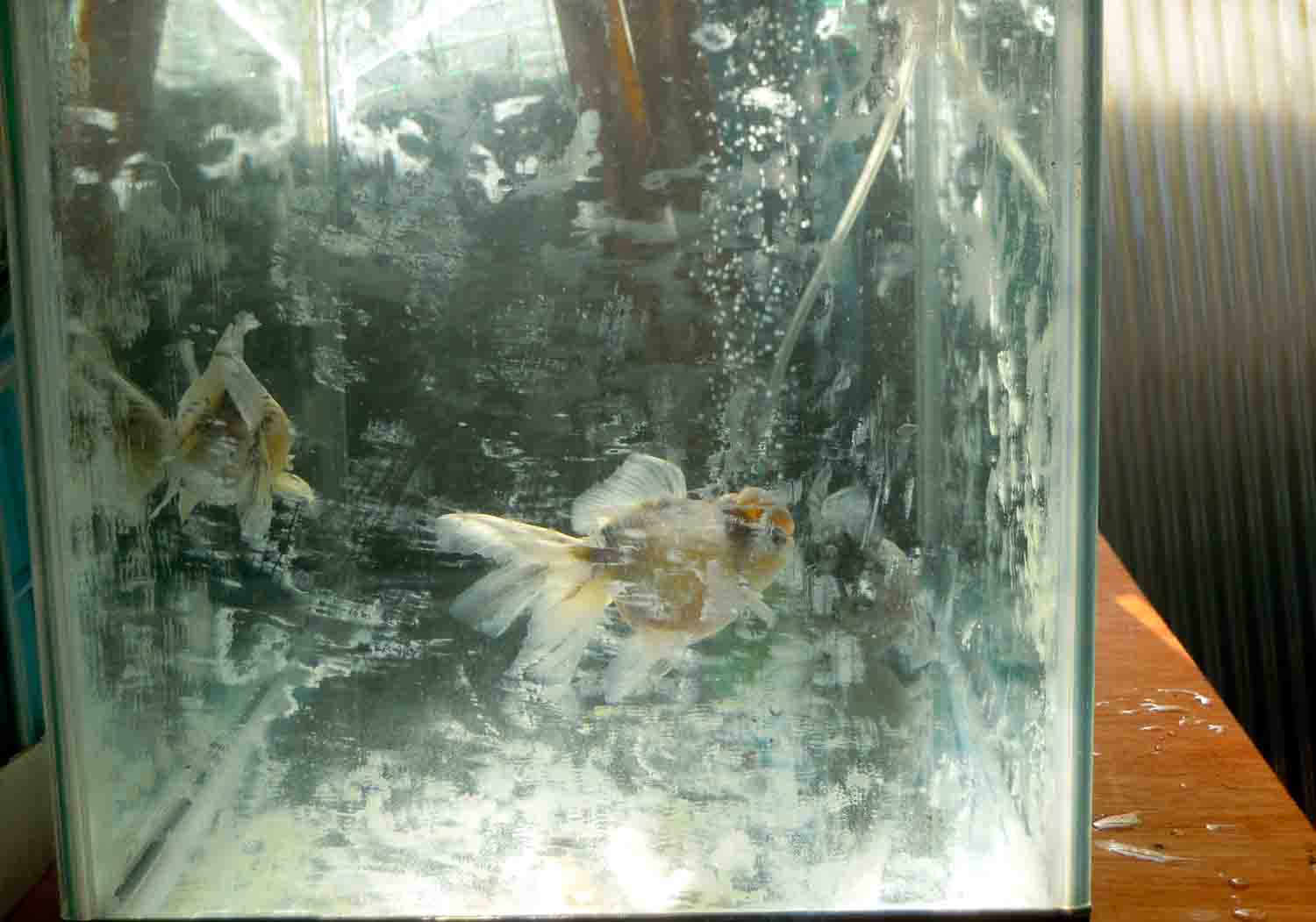 餌をいっぱいあげるからには水換えをしないと病気になってしまうので、