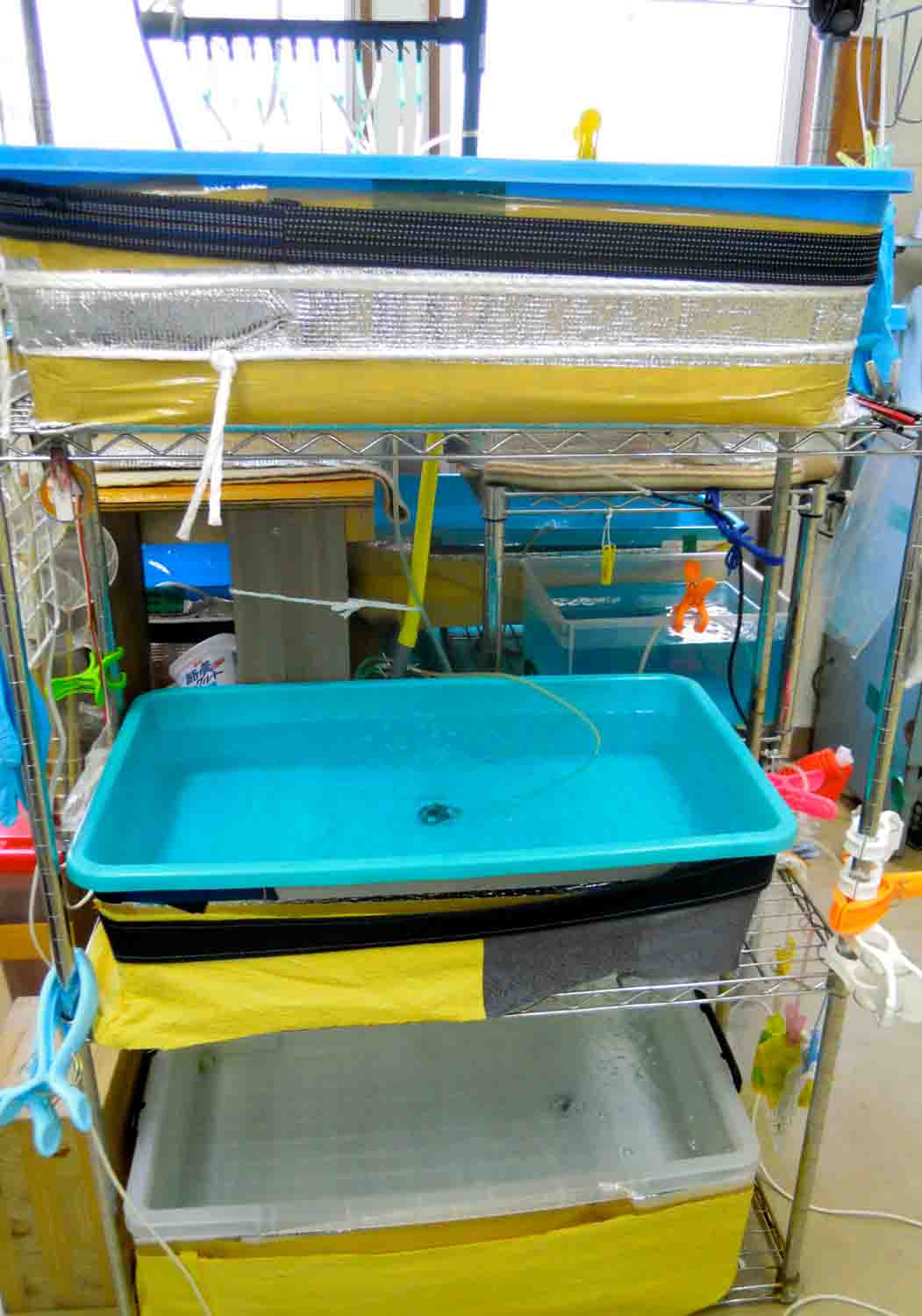 全ての飼育槽を掃除していたらとても効率が悪く2時間以上かかってしまいます。