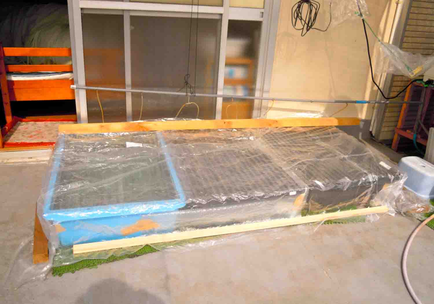 魚を入れた溜水用のトロ舟と場所を入れ替えて綺麗に洗い溜水をしておきました。