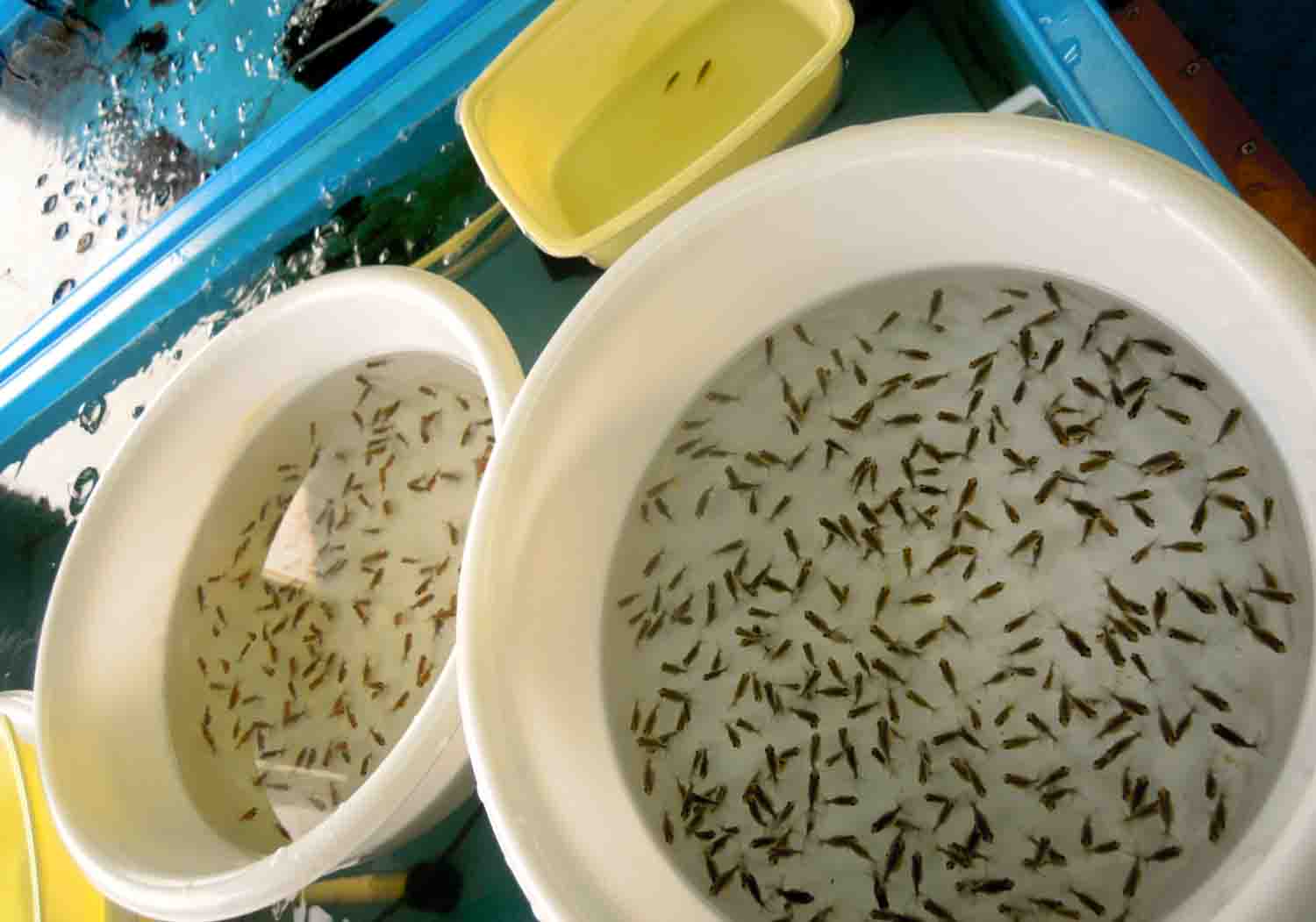 一番大きな稚魚の飼育槽が狭そうに見えてきたので、