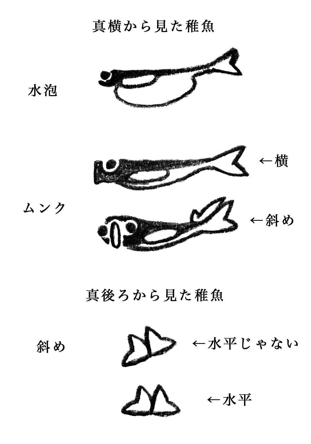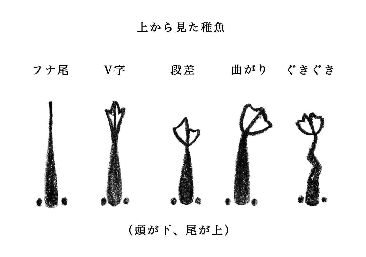 明日はこういうタイプの尾をしている稚魚を残すというのを、