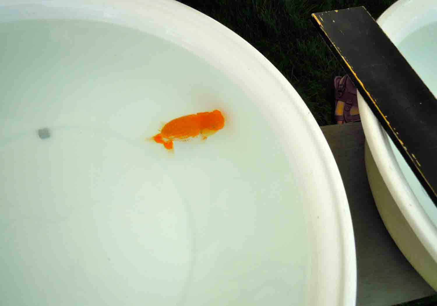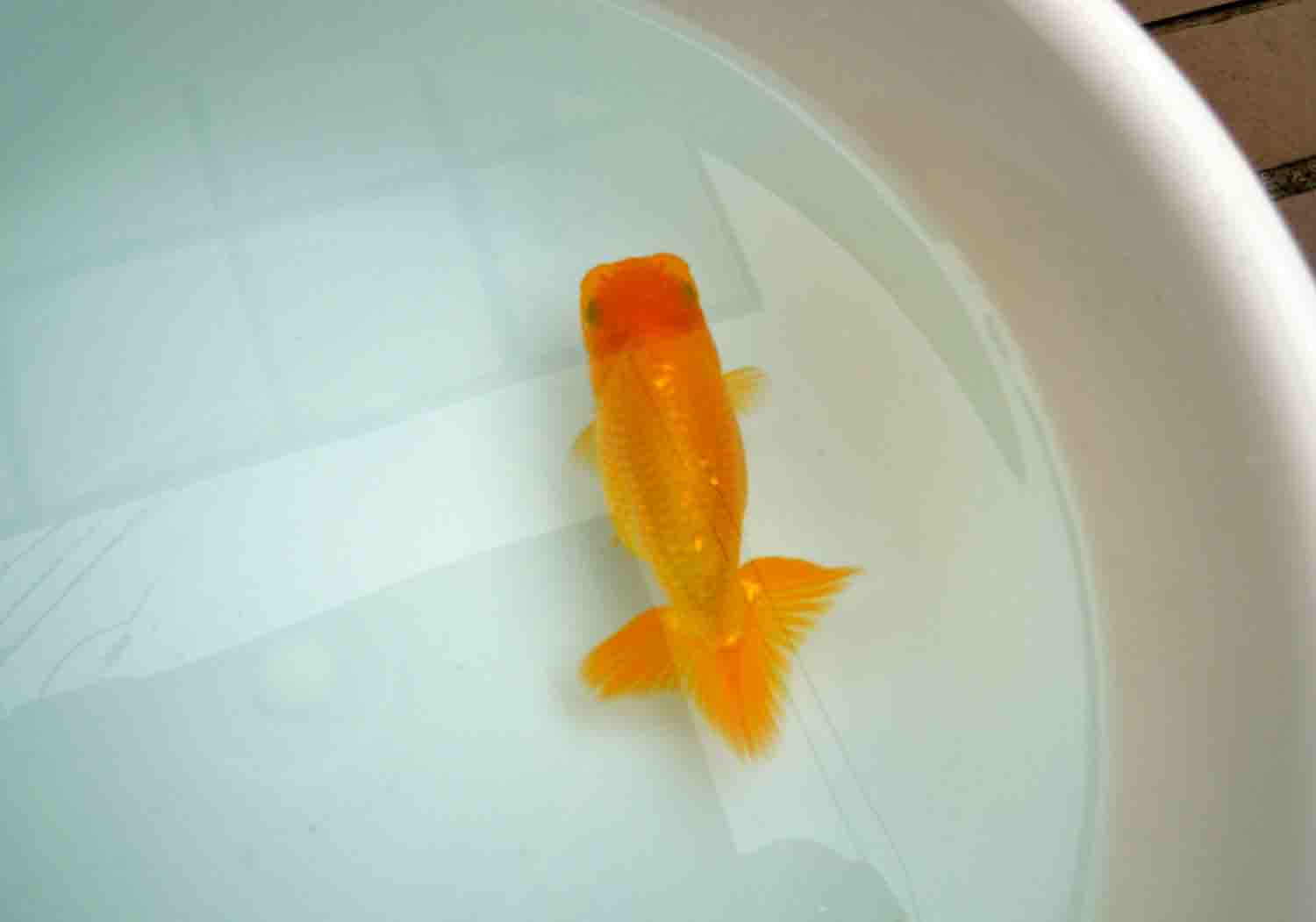 金魚話に花を咲かせていた母ですがふと気が付くと洗面器に、