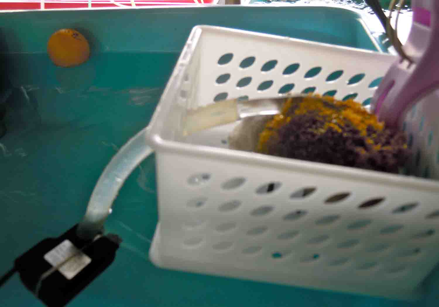 ミニミニ濾過器を衣装ケースに設置する方法は凄く簡単で大きな洗濯バサミで、