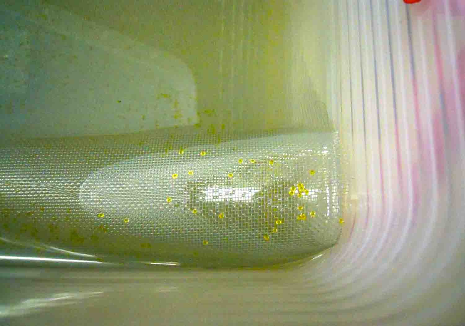 飼育水をそこに入れて卵が重ならないようにバラ撒いたそうです。