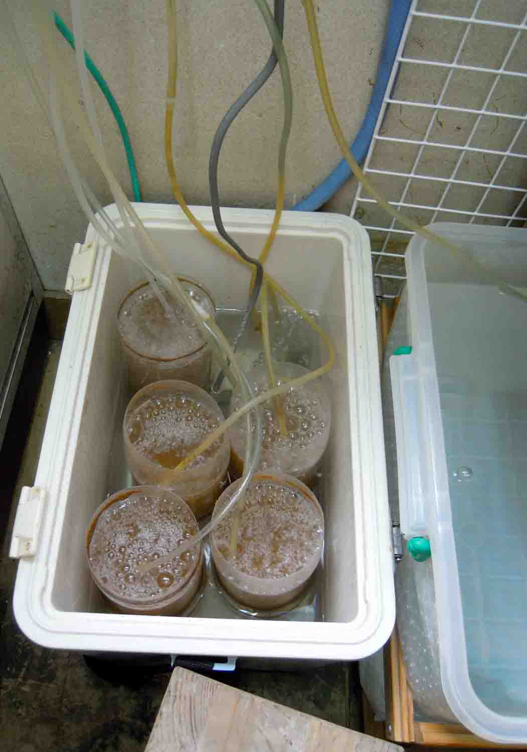 水と塩の量を測ってシュリンプを湧かして網で濾して与えて、