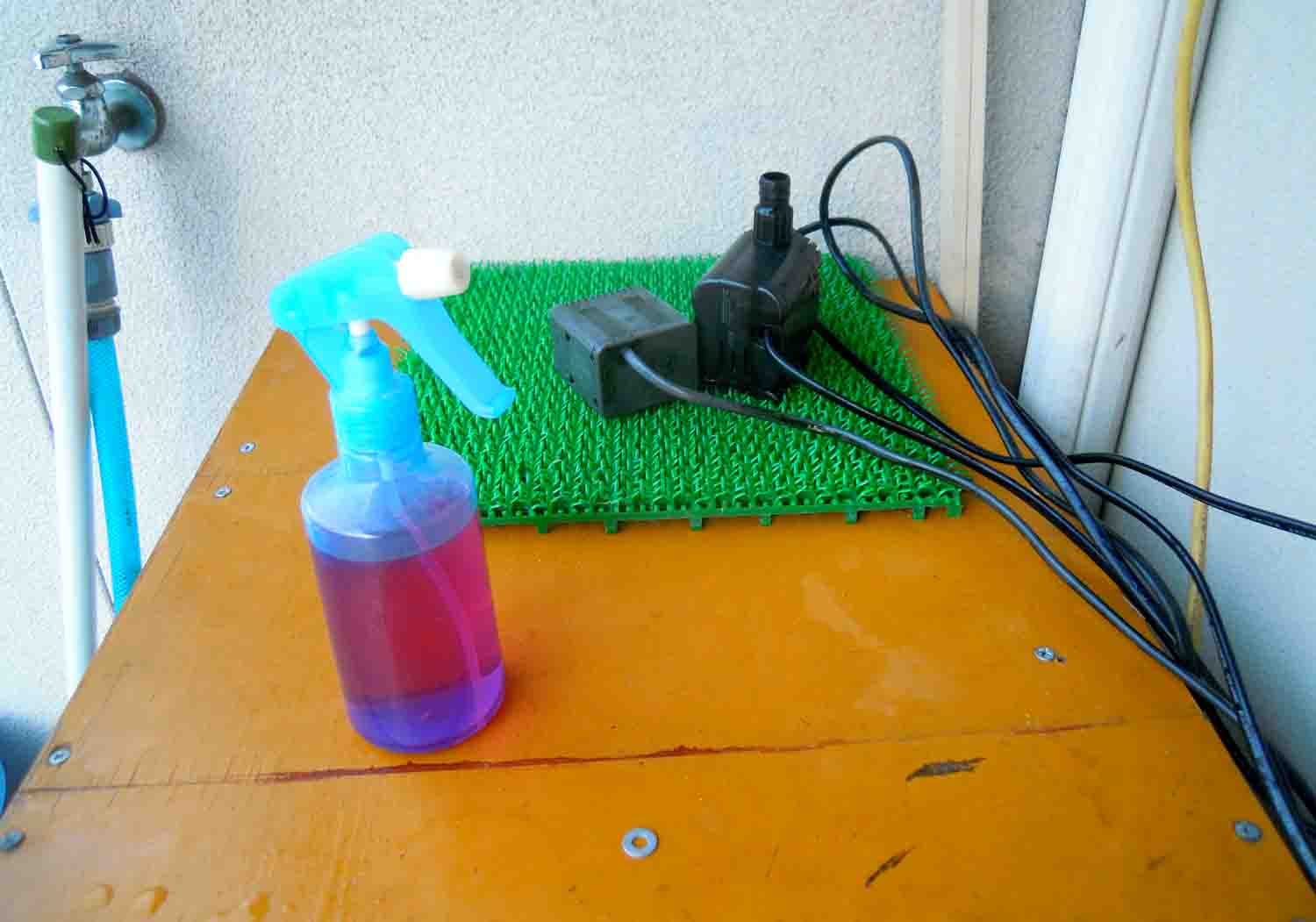 今のうちに仕事場の稚魚用の道具をハイターで消毒しておいて、