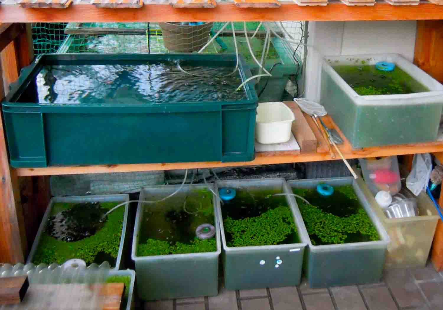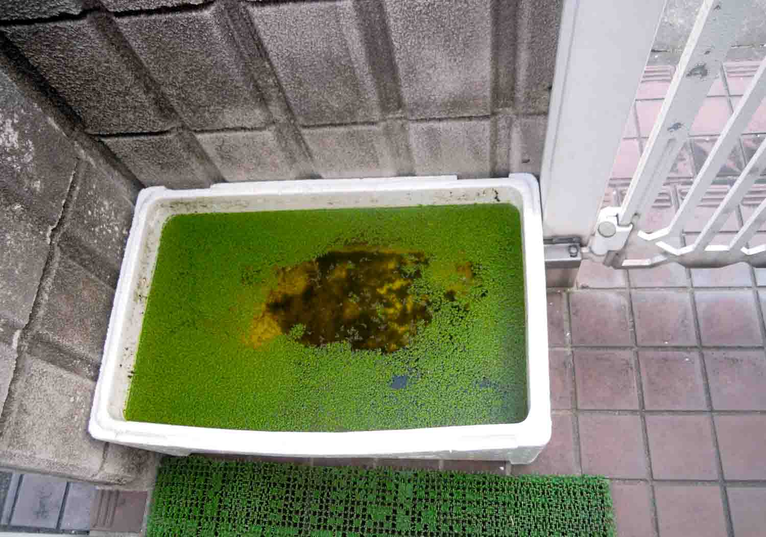 今出来るのは残り少ない浮き草をメダカの水槽やプラスチックケースを出して、