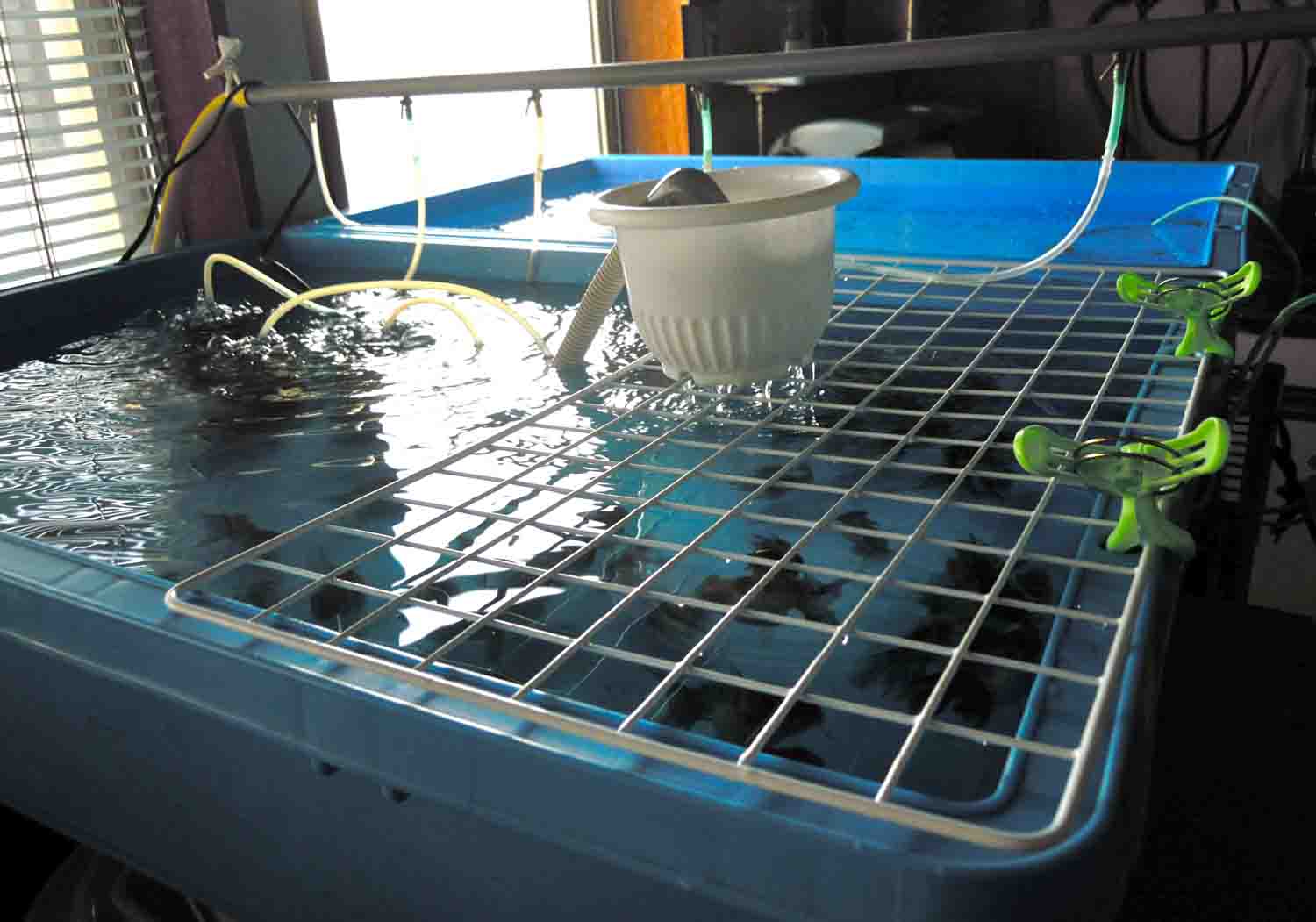 母は室内のトロ舟にも上部濾過器を付けてみたそうです。