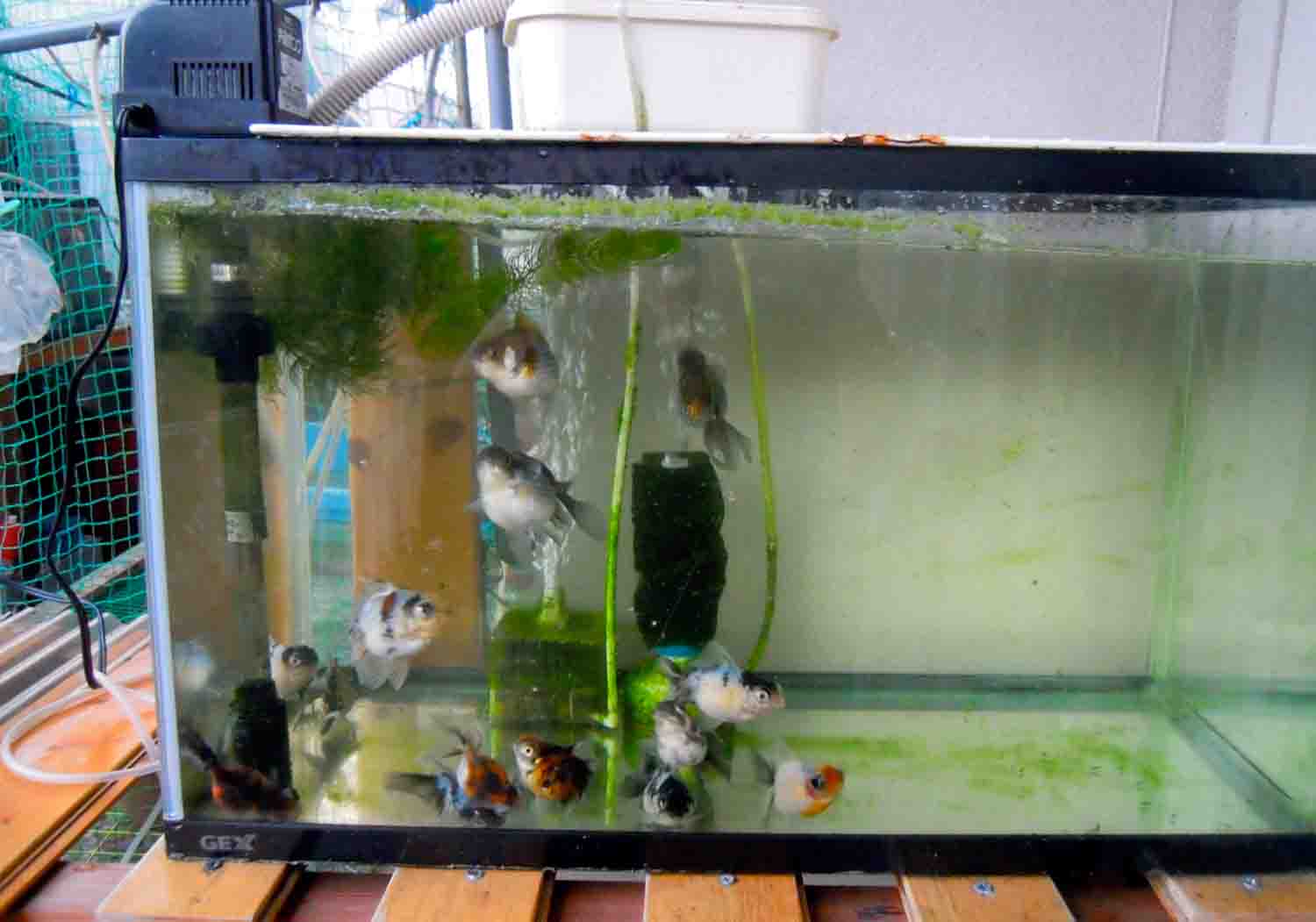 空いたスペースがあれば金魚用のトロ舟を置いておかなくてはならないほど、