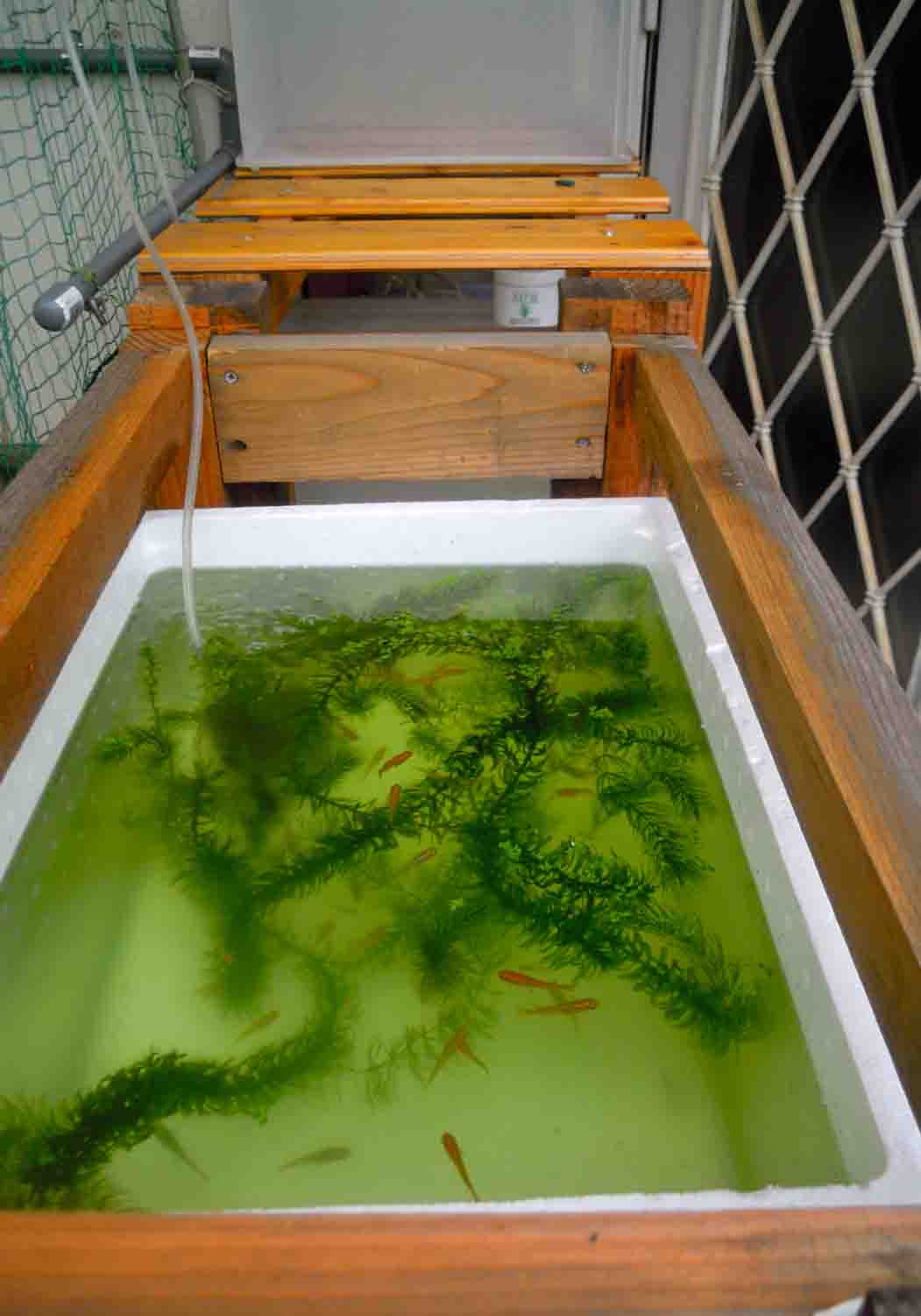 玄関先のメダカは北側にあるので水温が上がりにくい場所です。
