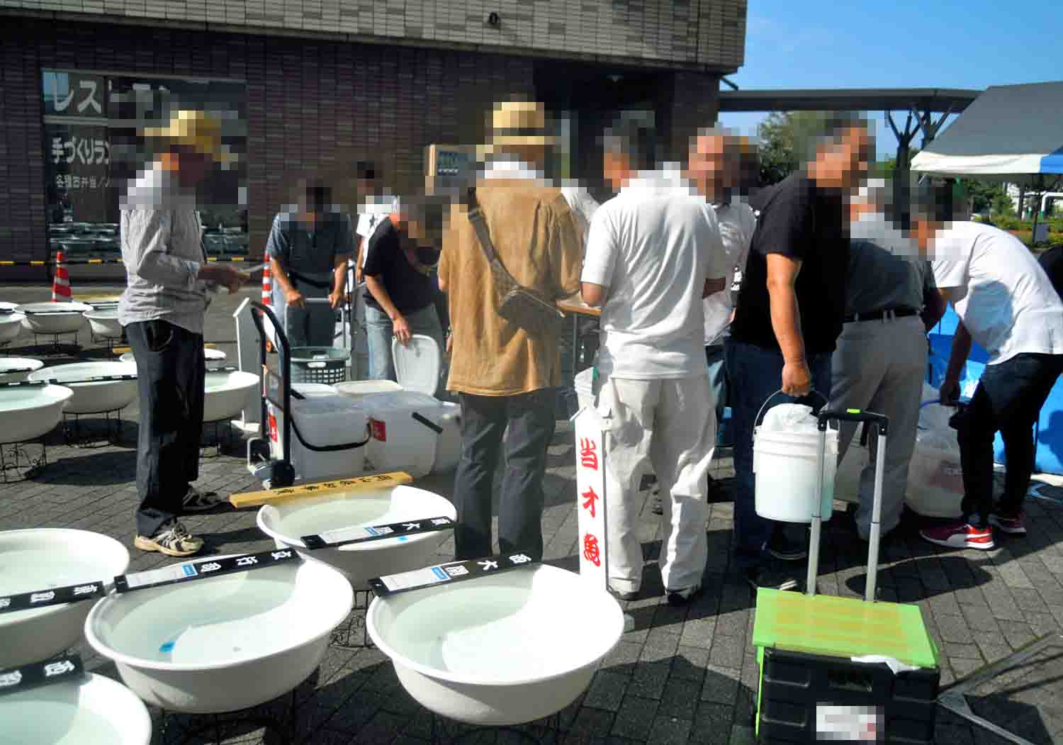 受付が終わると次は連れて来た魚を預けるらしいです。