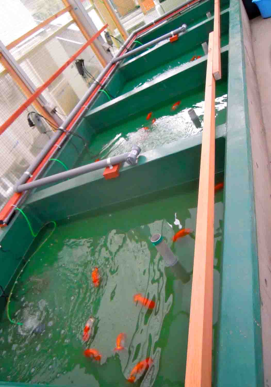 会長さんの飼育場の蘭鋳の入ったたたき池には15℃設定で、