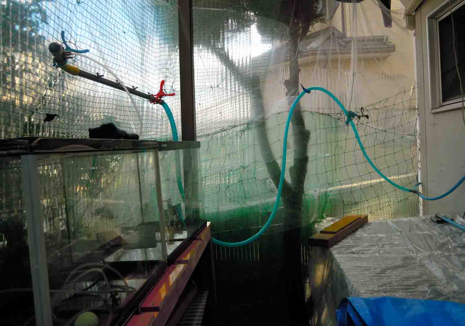 母は水槽を綺麗に洗って自転車置き場にリメイクして新たに設置した棚の上に置いていました。