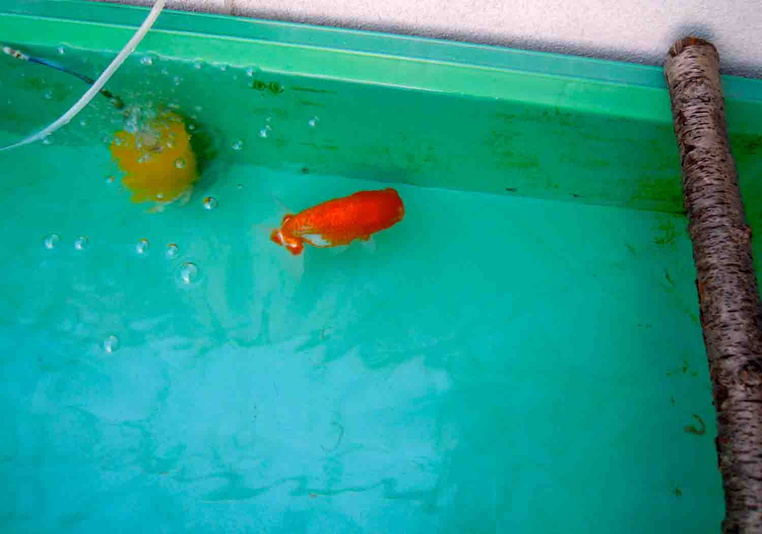 母はたくさんフンを出した蘭鋳のところの飼育槽を、