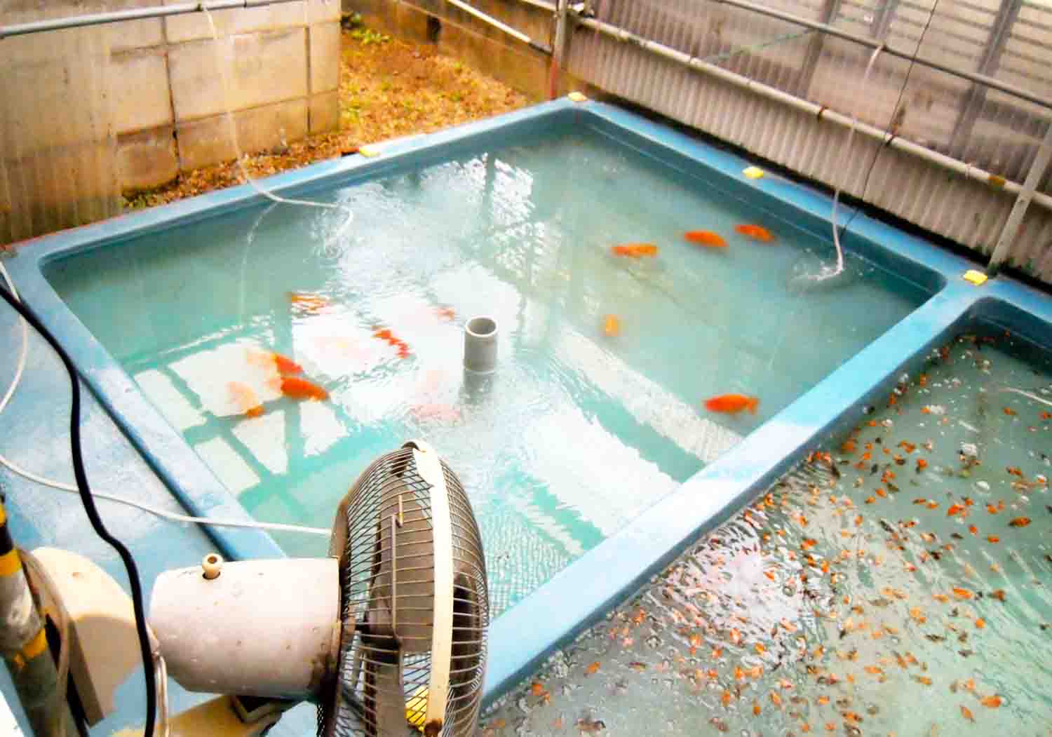 飼育場ではたたき池にたくさんの蘭鋳が泳いでいたみたいなのですが、
