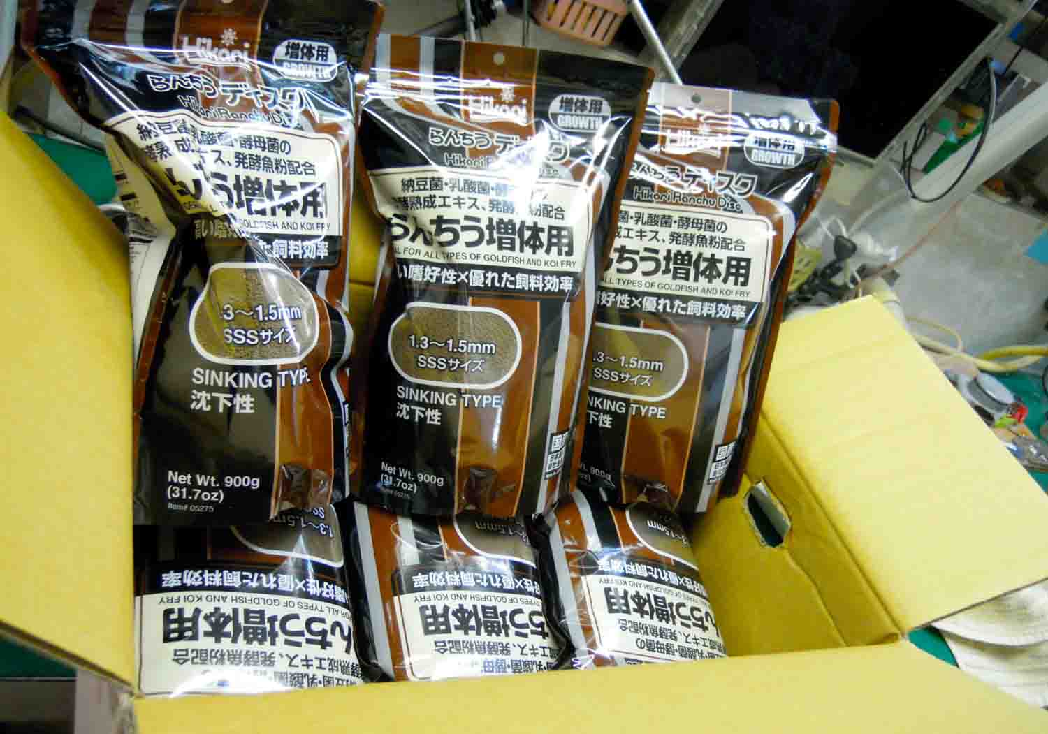 先日アンブローズ2kgが2袋とらんちうディスク900gが2袋を買ったのに、