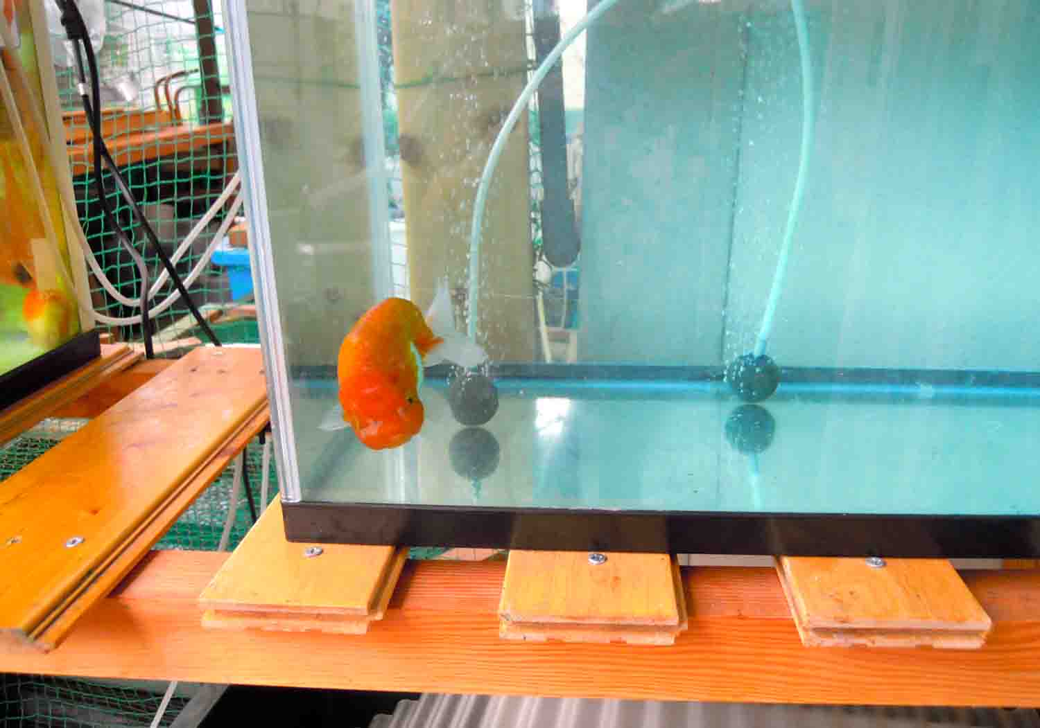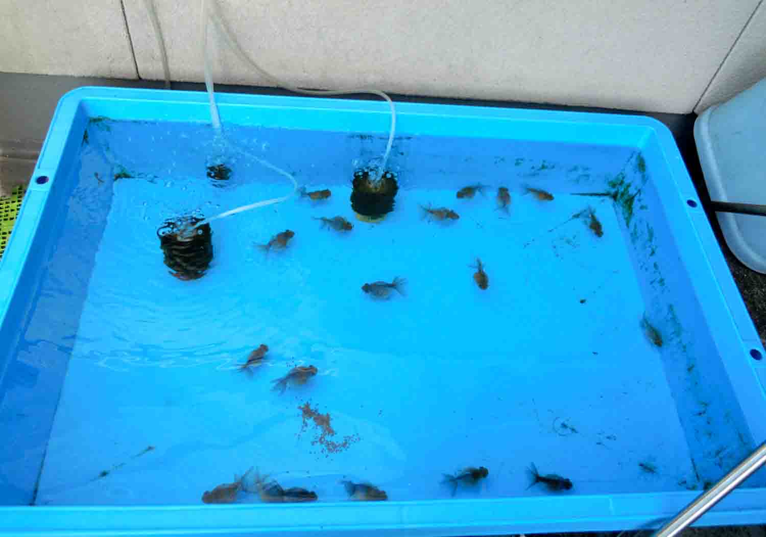 水を換えながら蘭鋳の稚魚の尾を確認すると良い感じだったそうです。
