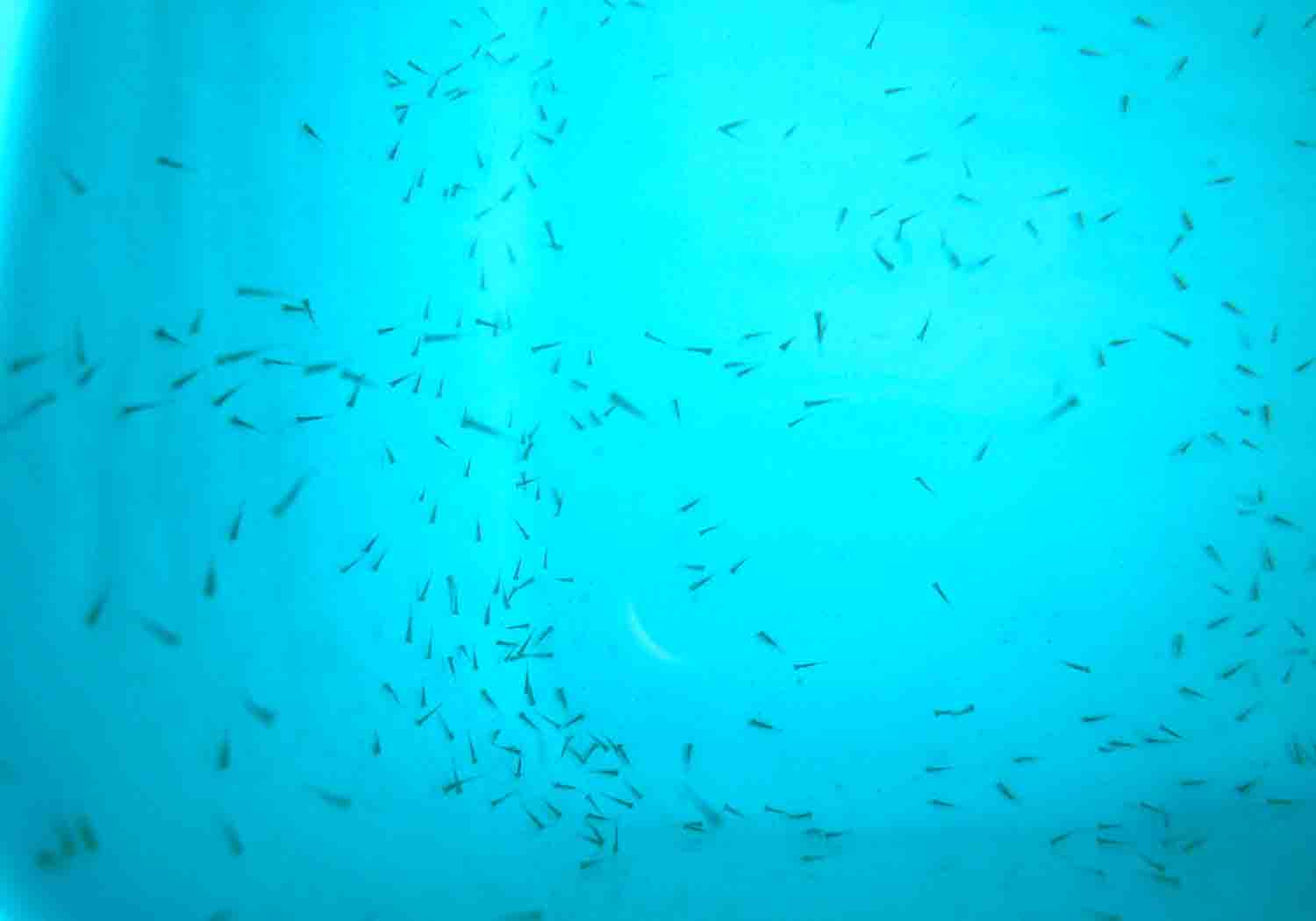 生まれたばかりの稚魚は壁や床に貼り付いてじっとしている事が